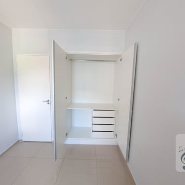 A sua parede é voltada para a empena do prédio, não fazendo divisão com outro apartamento, o que proporciona mais silêncio e tranquilidade.