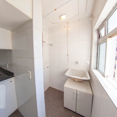 A janela é ampla, voltada para a área de serviço, que por sua vez possui excelente ventilação, o que torna o ambiente agradável e evita o excesso de umidade.